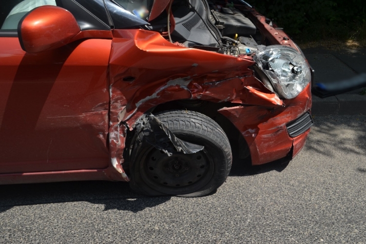 A fenti képen az egyik balesetben összetört jármű látható. Két autó ütközött össze 2021. június 23-án 10 óra 35 perc körül Budapest II. kerületében, a Hűvösvölgyi úton. Ebben a balesetben egy ember könnyebben megsérült.