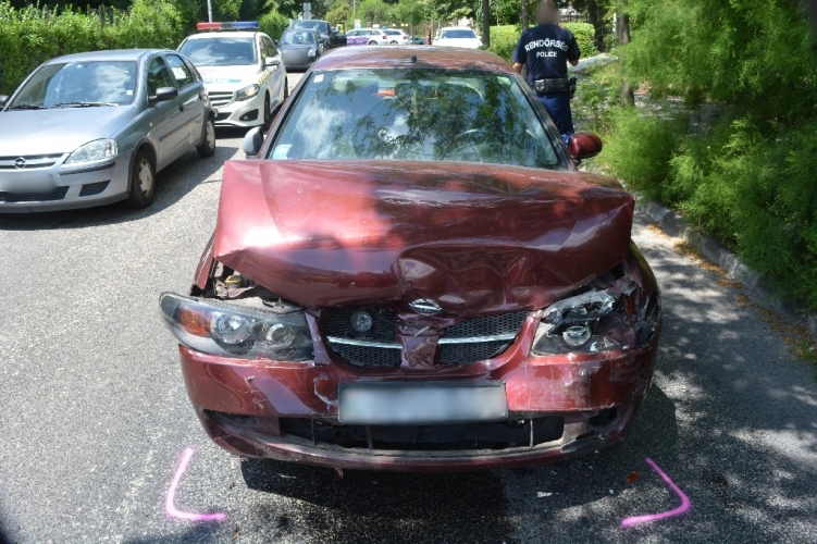 A fenti képen az egyik balesetben összetört autó látható. Három autó ütközött össze 2021. július 3-án 11 óra 40 perc körül Budapest XII. kerületében, a Szendi árok 7. számnál. Ebben a balesetben egy ember sérült meg könnyebben.