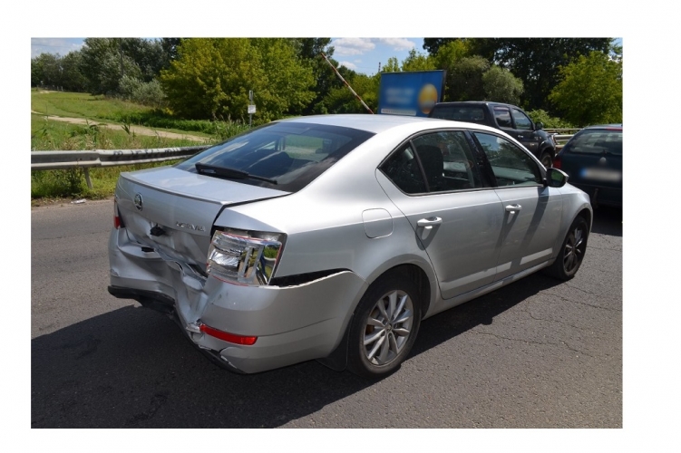 A fenti képen az egyik balesetben összetört autó látható. Három gépkocsi ütközött össze 2021. augusztus 18-án 12 óra körül Budapest XV. kerületében, a Dunakeszi úton. Ebben a balesetben egy ember könnyebben megsérült.