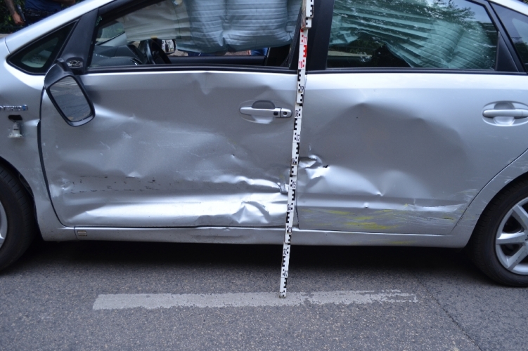 A fenti képen az egyik balesetben összetört autó látható. Két személygépkocsi ütközött össze 2021. szeptember 3-án 6 óra 20 perc körül Budapest VI. kerületében, az Andrássy út és a Bajza utca kereszteződésében. Ebben a balesetben egy ember könnyebben megsérült.