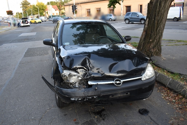 A fenti képen az egyik balesetben összetört autó látható. Két személygépkocsi ütközött össze 2021. szeptember 7-én 17 óra körül Budapest IV. kerületében, az Árpád úton. Ebben a balesetben egy ember könnyebben megsérült.