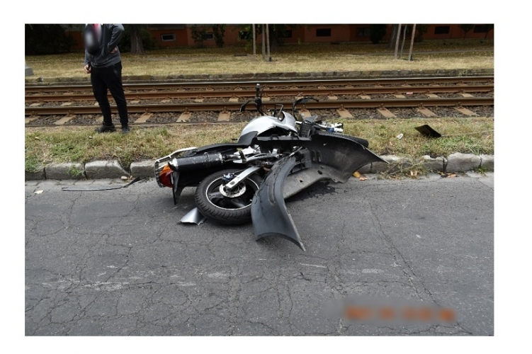 A fenti képen az egyik balesetben összetört motor átható. Egy gépkocsi és egy motoros ütközött össze 2021. szeptember 20-án 7 óra 50 perc körül Budapest XIV. kerületében, a Nagy Lajos Király útján. Ebben a balesetben egy ember súlyosan megsérült.