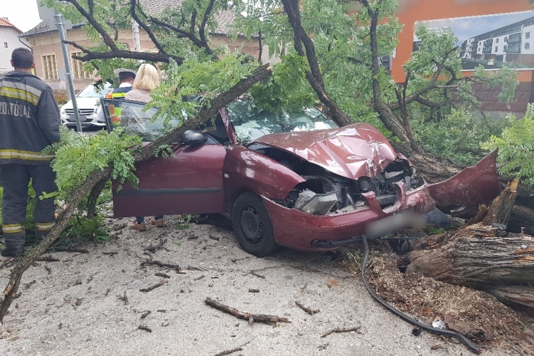 A fenti képen az egyik balesetben összetört autó látható. Eddig tisztázatlan körülmények között 2021. szeptember 21-én 15 óra 15 perc körül egy autó fának ütközött a Budapest, XIX. kerületi József Attila utcában. Ebben a balesetben nem sérült meg senki.