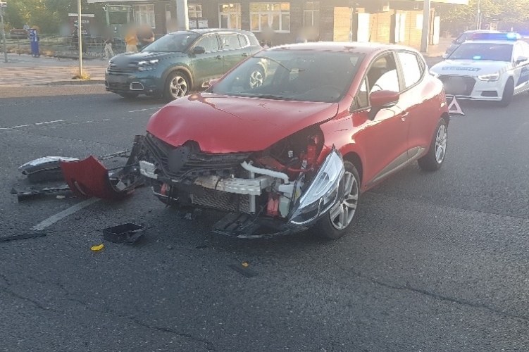A fenti képen az egyik balesetben összetört egyik autó látható. Eddig tisztázatlan körülmények között 2021. szeptember 25-én 17 óra körül két autó ütközött a Budapest, IX. kerületi Soroksári út és Kvassay Jenő út kereszteződésében. Ebben a balesetben nem sérült meg senki.