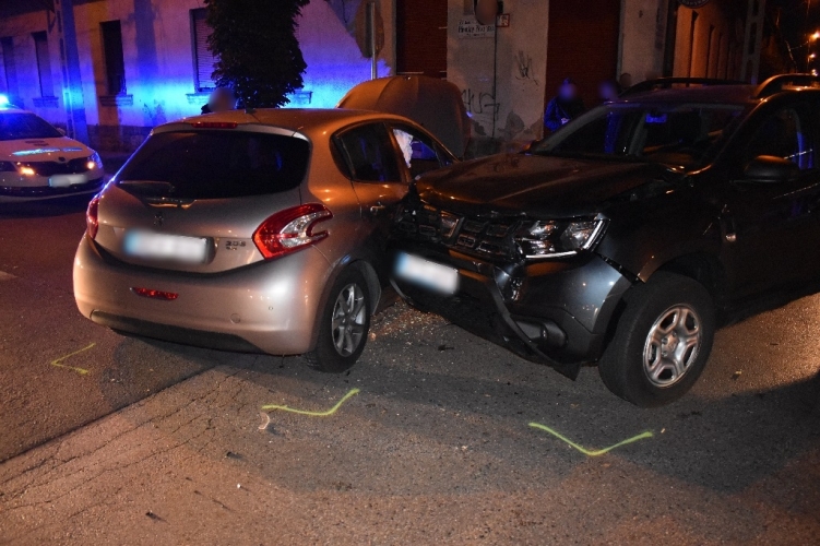 A fenti képen az egyik balesetben összetört személygépkocsik láthatóak. Eddig tisztázatlan körülmények között ütközött össze két autó 2021. október 11-én 17 óra 20 perc körül Budapest XV. kerületében, a Pázmány Péter utcában. Ebben a balesetben egy ember könnyebben megsérült.