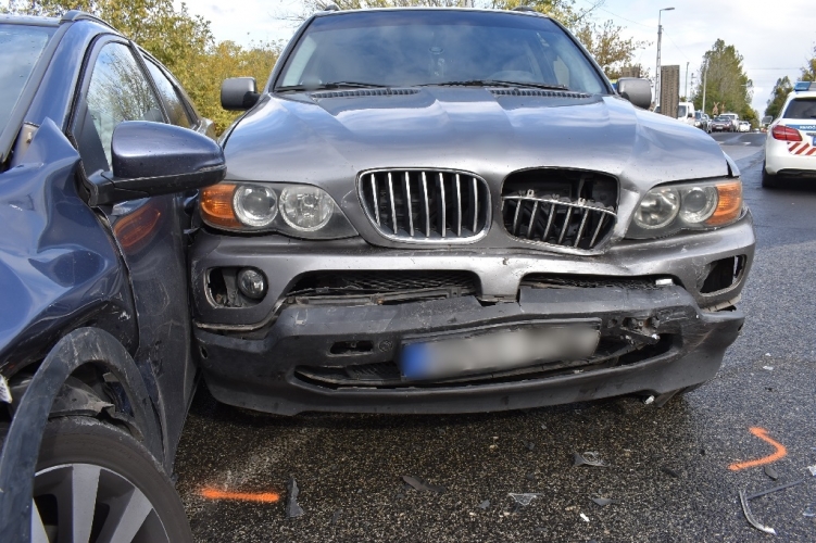 A fenti képen az egyik balesetben összetört két autó látható. Eddig tisztázatlan körülmények között 2021. október 13-án 9 óra 46 perc körül két kocsi ütközött a Budapest, XVII. kerületi Ferihegyi út és Szabadság utca kereszteződésében. Ebben a balesetben senki sem sérült meg.