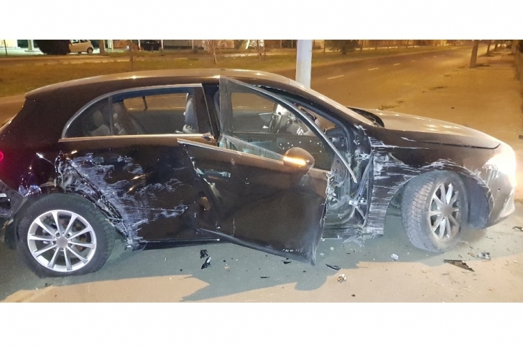 A fenti képen az egyik balesetben összetört autó látható. Eddig tisztázatlan körülmények között 2021. október 30-án 1 óra 30 perc körül egy kocsi egy közlekedési táblának, majd egy kapunak ütközött a Budapest, XI. kerületi Hunyadi János úton. Ebben a balesetben nem sérült meg senki.