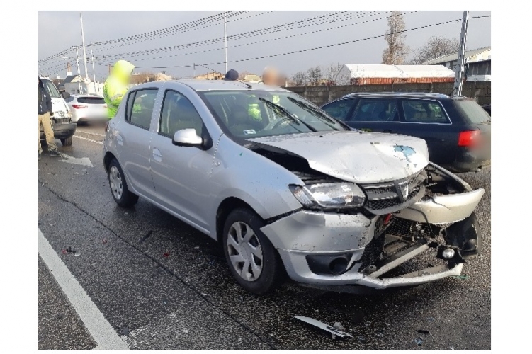 A fenti képen az egyik balesetben összetört autó látható. Három gépkocsi ütközött össze 2021. december 10-én 9 óra 30 perc körül Budapest XX. kerületében, a Helsinki út és a Meddőhányó utca kereszteződésében. Ebben a balesetben senki nem sérült meg.