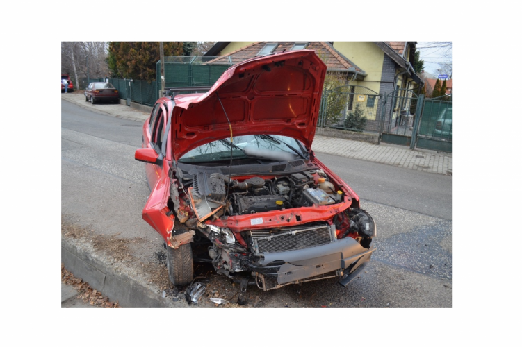 A fenti képen az egyik balesetben összetört autó látható. Eddig tisztázatlan körülmények között lesodródott az útról, és egy fának ütközött egy autó 2021. december 19-én 14 órakor Budapest XXII. kerületében, az Ady Endre úton. Ebben a balesetben egy ember könnyebben sérült meg.