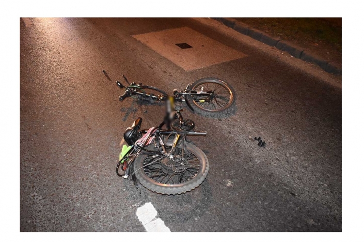 A fenti képen az egyik balesetben összetört kerékpár látható. Egy gépkocsi és egy kerékpár ütközött össze 2021. december 21-én 16 óra 30 perc körül Budapest XIV. kerületében, a Fogarasi úton. Ebben a balesetben egy ember könnyű sérülést szenvedett.