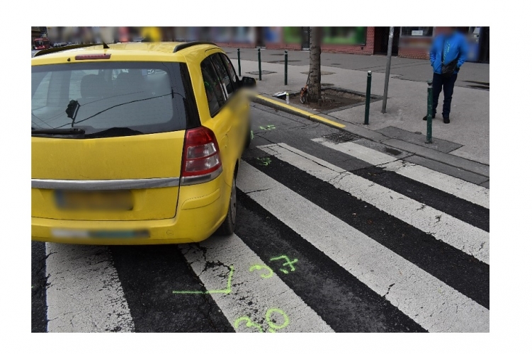 A fenti képen az egyik balesetben összetört autó látható. Egy gépkocsi ütött el egy gyalogost 2021. december 26-án 8 óra körül Budapest VIII. kerületében, a Harminckettesek terén. Ebben a balesetben egy ember súlyos sérülést szenvedett.