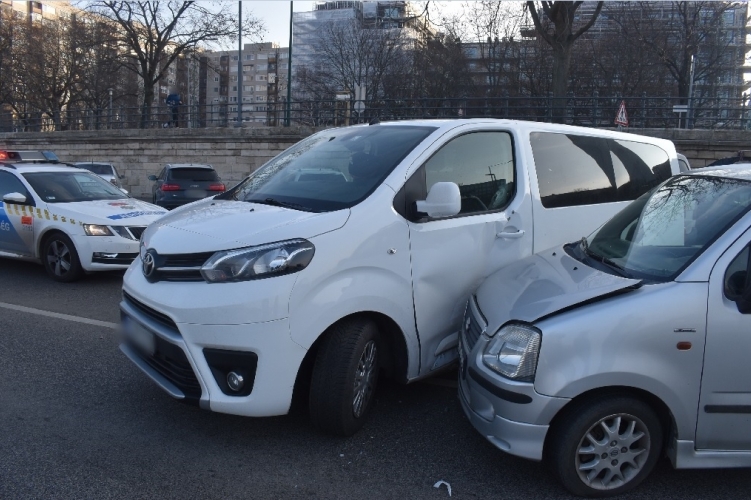 A fenti képen az egyik balesetben összetört személygépkocsik láthatók. Eddig tisztázatlan körülmények között ütközött össze két autó 2022. január 13-án 8 óra körül Budapest XIII. kerületében, a Carl Lutz rakparton. Ebben a balesetben egy ember könnyebben megsérült.