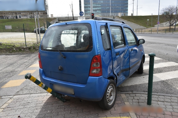 A fenti képen az egyik balesetben összetört egyik autó látható. Eddig tisztázatlan körülmények között 2022. január 30-án 12 óra 40 perc körül két gépkocsi ütközött a Budapest, XIII. kerületi Népfürdő utca és Róbert Károly körút kereszteződésében. Ebben a balesetben egy ember könnyebben megsérült.