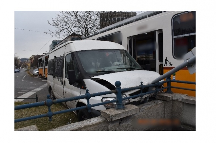 A fenti képen az egyik balesetben összetört autó és villamos látható. Egy gépkocsi és egy villamos ütközött össze 2022. március 5-én 8 óra 36 perc körül Budapest I. kerületében, a Krisztina körúton. Ebben a balesetben két ember szenvedett könnyű sérülést.