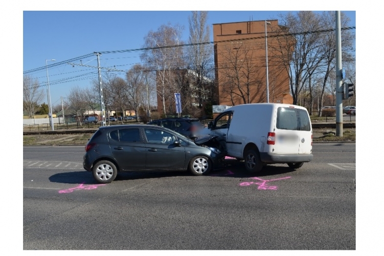 A fenti képen az egyik balesetben összetört két autó látható. Két gépkocsi ütközött össze 2022. március 14-én 8 óra 25 perc körül Budapest XX. kerületében, a Helsinki úton. Ebben a balesetben két ember szenvedett könnyű sérülést.