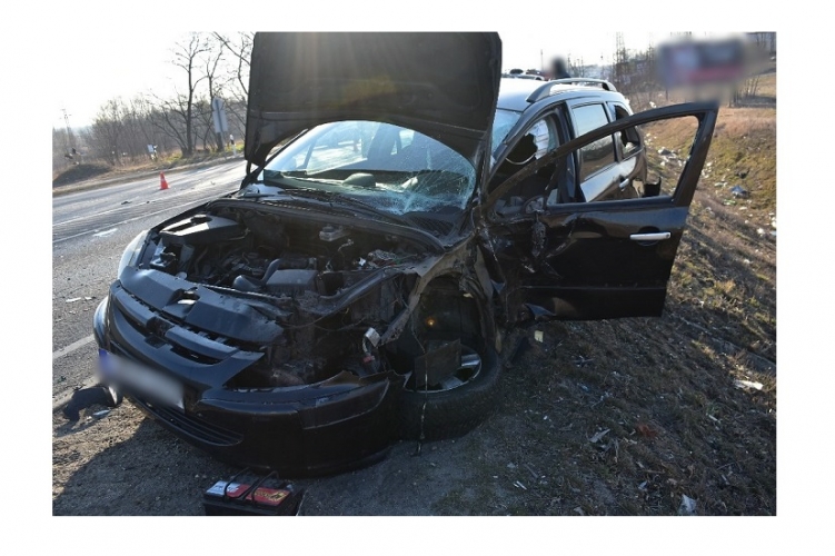 A fenti képen az egyik balesetben összetört autó látható. Egy gépkocsi és egy teherautó ütközött össze 2022. március 21-én 5 óra 52 perc körül Budapest XXIII. kerületében, az Ócsai úton, az M51-es autóút felhajtójánál. Ebben a balesetben két ember könnyebben megsérült.