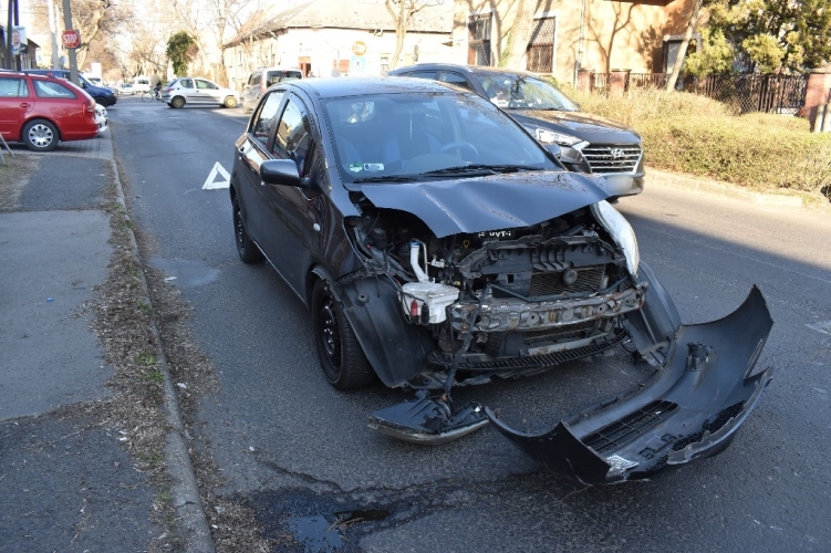 A fenti képen az egyik balesetben összetört autó látható. Két autó ütközött össze 2022. március 23-án 14 óra 9 perckor Budapest XIX. kerületében, az Ady Endre út és a Vas Gereben utca kereszteződésében. Ebben a balesetben egy ember sérült meg súlyosan.
