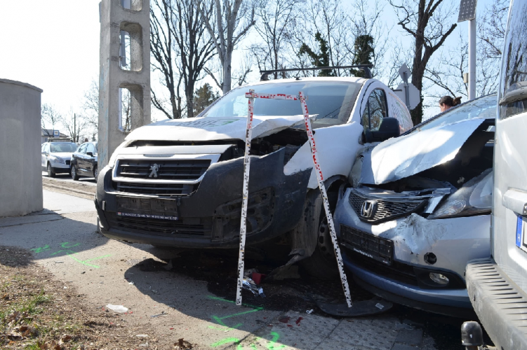 A fenti képen az egyik balesetben összetört autók láthatók. Három autó ütközött össze eddig tisztázatlan körülmények között 2022. március 26-án 13 óra 20 perc körül Budapest XXIII. kerületében, a Szent László úton. Ebben a balesetben egy ember könnyebben megsérült.