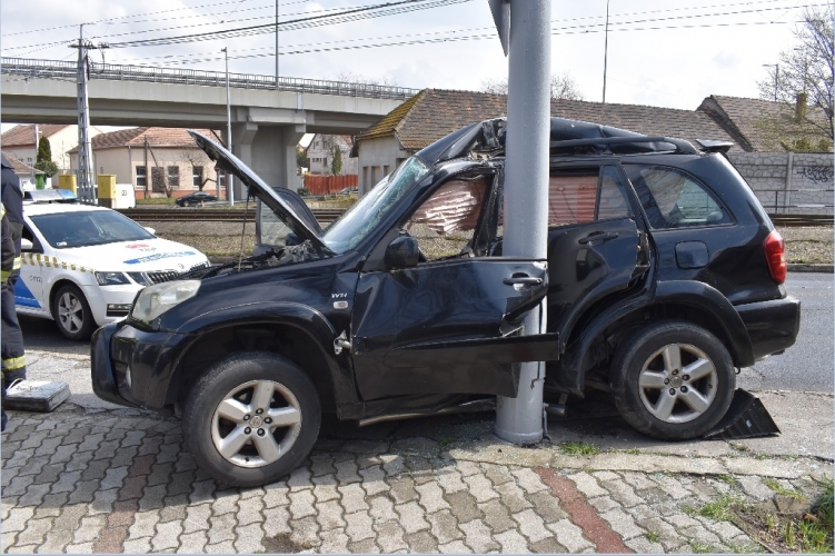 A fenti képen az egyik balesetben összetört autó látható. Egy autó ütközött villanyoszlopnak eddig tisztázatlan körülmények között 2022. április 3-án 11 óra 20 perc körül Budapest XXIII. kerületében, a Haraszti úton. Ebben a balesetben egy ember súlyosan megsérült.