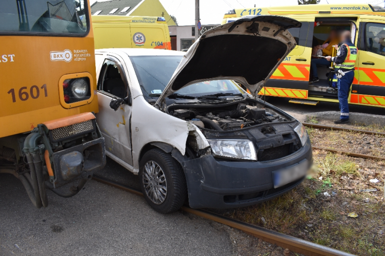 A fenti képen az egyik balesetben összetört autó látható. Egy autó és egy villamos ütközött össze eddig tisztázatlan körülmények között 2022. április 19-én 10 óra körül Budapest XVIII. kerületében, a Üllői úton. Ebben a balesetben egy ember súlyosan, egy ember pedig könnyebben megsérült.