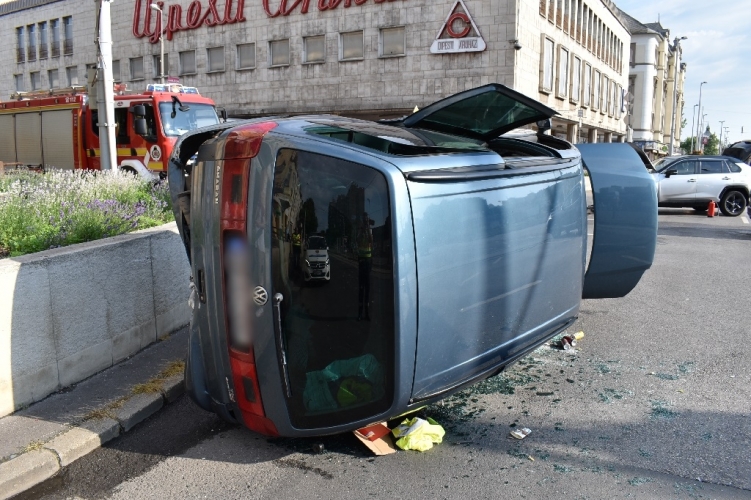 A fenti képen az egyik balesetben összetört autó látható. Eddig tisztázatlan körülmények között 2022. június 11-én 06 óra 45 perc körül két gépkocsi ütközött a Budapest, IV. kerületi István út és az Árpád út kereszteződésében. Ebben a balesetben két ember könnyebben megsérült.
