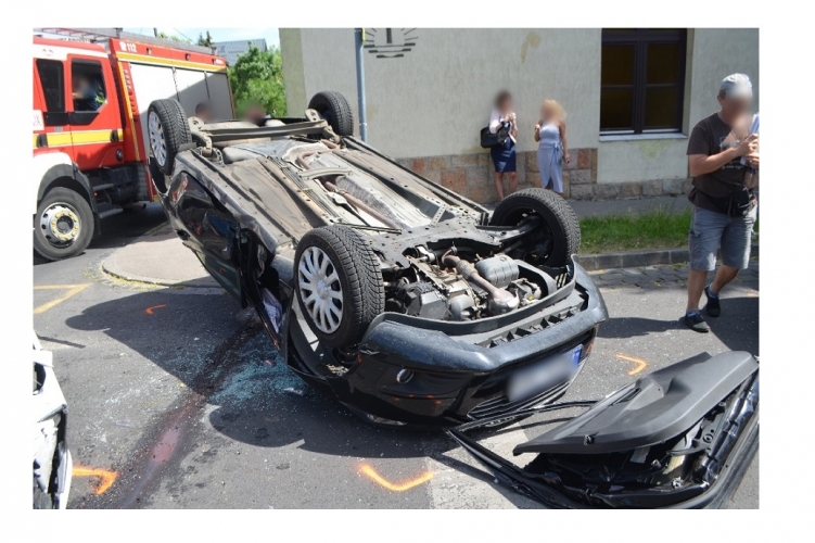 A fenti képen az egyik balesetben összetört autó látható. Két gépkocsi ütközött össze 2022. június 21-én 13 óra 55 perc körül Budapest XIX. kerületében, a Nádasdy utca és a Kossuth Lajos utca kereszteződésében. Ebben a balesetben egy ember könnyebben megsérült.
