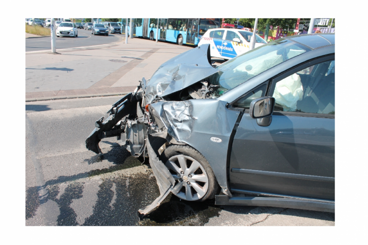 A fenti képen az egyik balesetben összetört autó látható. Eddig tisztázatlan körülmények között ütközött össze két autó 2022. június 24-én 15 óra 32 perckor Budapest IX. kerületében a Soroksári út és Kvassay Jenő út kereszteződésében. Ebben a balesetben egy ember könnyebben sérült meg.