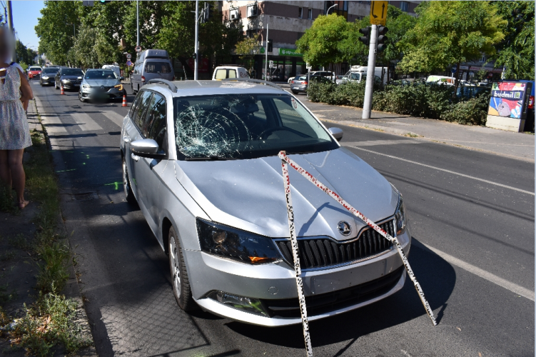 A fenti képen az egyik balesetben összetört autó látható. Egy autó ütött el egy gyalogost eddig tisztázatlan körülmények között 2022. július 4-én 8 óra 34 perc körül Budapest III. kerületében, a Szépvölgyi úton. Ebben a balesetben egy ember könnyebben megsérült.