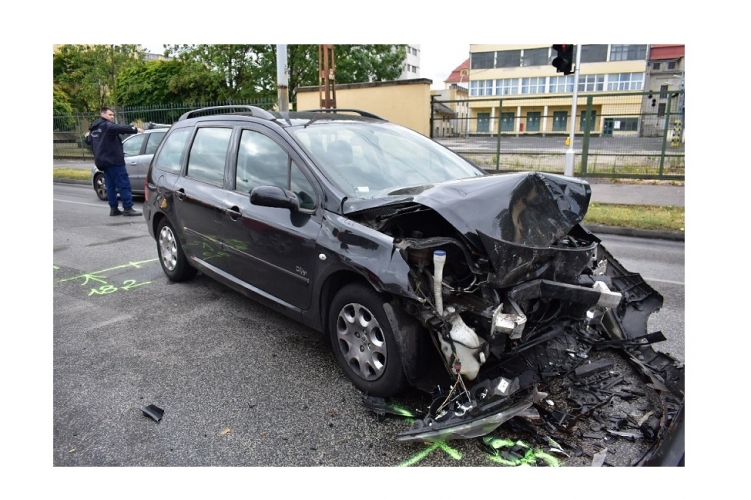 A fenti képen az egyik balesetben összetört autó látható. Három gépkocsi ütközött össze 2022. július 31-én 9 óra körül Budapest X. kerületében, a Jászberényi úton. Ebben a balesetben három ember könnyebben megsérült.