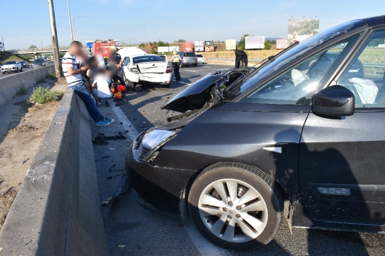 A fenti képen az egyik balesetben összetört autók láthatóak. Három autó ütközött össze 2022. augusztus 2-án 6 óra 55 perckor Budapest XV. kerületében, az M3-as autópálya bevezető szakaszán. Ebben a balesetben ketten sérültek meg könnyebben.