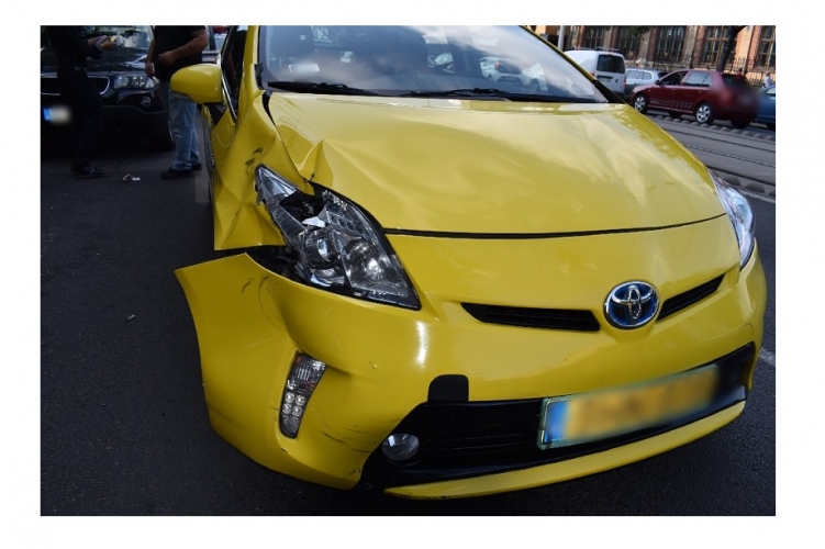 A fenti képen az egyik balesetben összetört autó látható. Két gépkocsi ütközött össze 2022. szeptember 7-én 16 óra örül Budapest VI. kerületében, a Teréz körúton. Ebben a balesetben senki nem sérült meg.