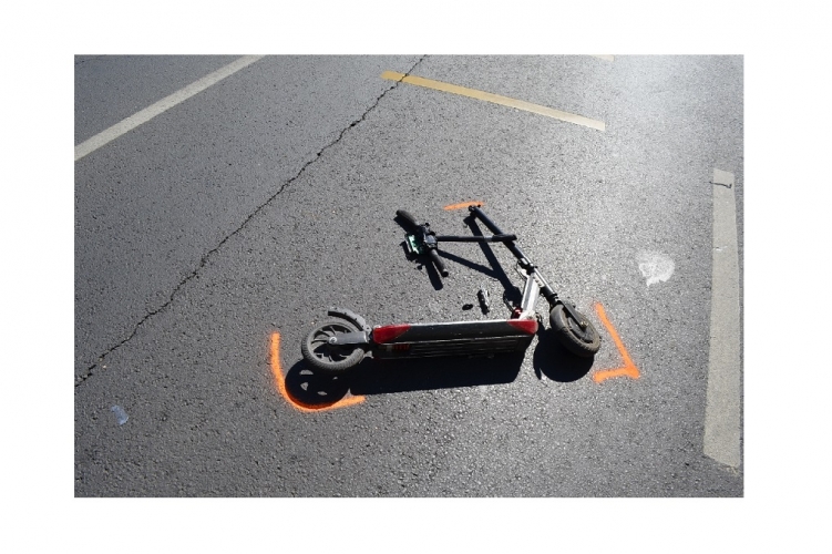 A fenti képen az egyik balesetben összetört roller látható. Egy gépkocsi és egy roller ütközött össze 2022. szeptember 10-én 10 óra 30 perc körül Budapest VII. kerületében, a Thököly út és a Dózsa György út kereszteződésében. Ebben a balesetben egy ember könnyebben megsérült.