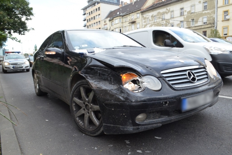 A fenti képen az egyik balesetben összetört autó látható. Két autó ütközött össze eddig tisztázatlan körülmények között 2022. szeptember 10-én 9 óra 15 perckor Budapest XIII. kerületében, a Róbert Károly körúton. Ebben a balesetben senki nem sérült meg.