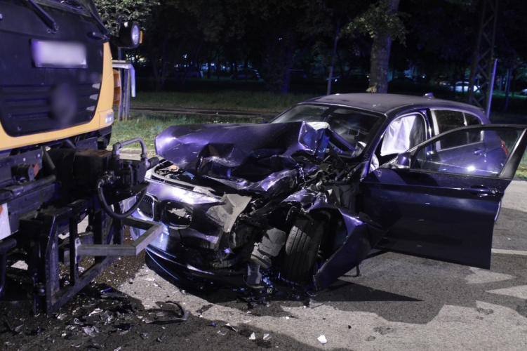 A fenti képen az egyik balesetben összetört két jármű látható. Eddig tisztázatlan körülmények között 2022. szeptember 20-án 2 óra 20 perc körül egy személygépkocsi és egy tehergépkocsi ütközött a Budapest, XIV. kerületi Kerepesi úton. Ebben a balesetben egy ember könnyebben megsérült.