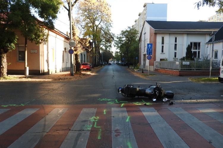 A fenti képen az egyik balesetben összetört jármű látható. Egy tehergépkocsi és egy motor ütközött össze eddig tisztázatlan körülmények között 2022. október 18-án 8 óra körül Budapest XIX. kerületében, a Kisfaludy utcában. Ebben a balesetben egy ember könnyebben megsérült.