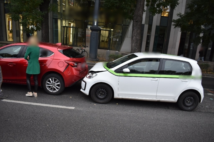 A fenti képen az egyik balesetben összetört két autó látható. Eddig tisztázatlan körülmények között 2022. október 24-én 15 óra 49 perc körül négy jármű ütközött a VI. kerületi Dózsa György úton. Ebben a balesetben két ember könnyebben megsérült.