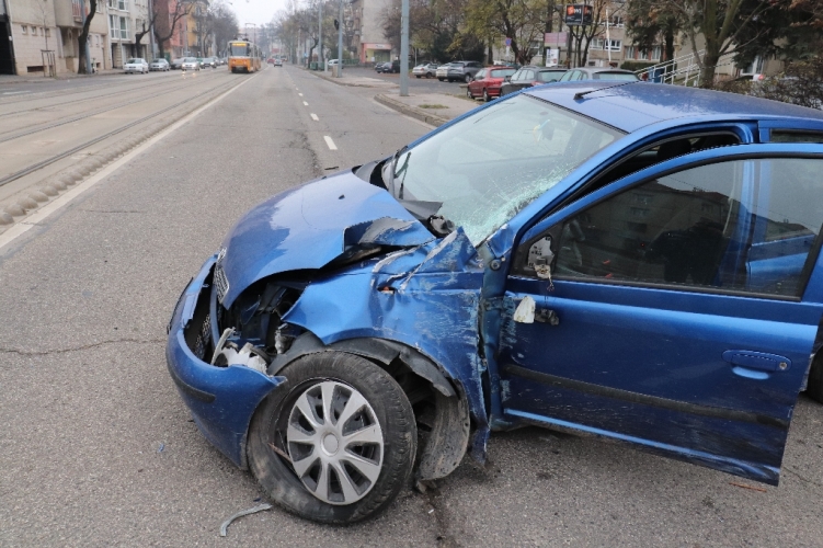 A fenti képen az egyik balesetben összetört autó látható. Eddig tisztázatlan körülmények között 2022. november 27-én 7 óra 50 perc körül két gépkocsi ütközött össze Budapest III. kerületében, a Bécsi úton. Ebben a balesetben egy ember könnyebben megsérült.