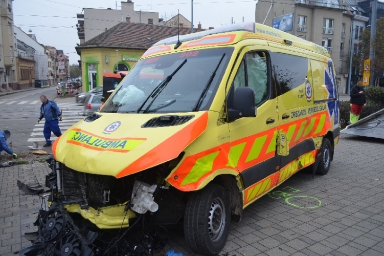A fenti képen az egyik balesetben összetört mentőautó látható. A jármű egy másik gépkocsival ütközött össze 2020. november 14-én 13 órakor Budapesten, a III. kerületi Bécsi út és Kiscelli utca kereszteződésében. Ebben a balesetben öt ember könnyebben megsérült.