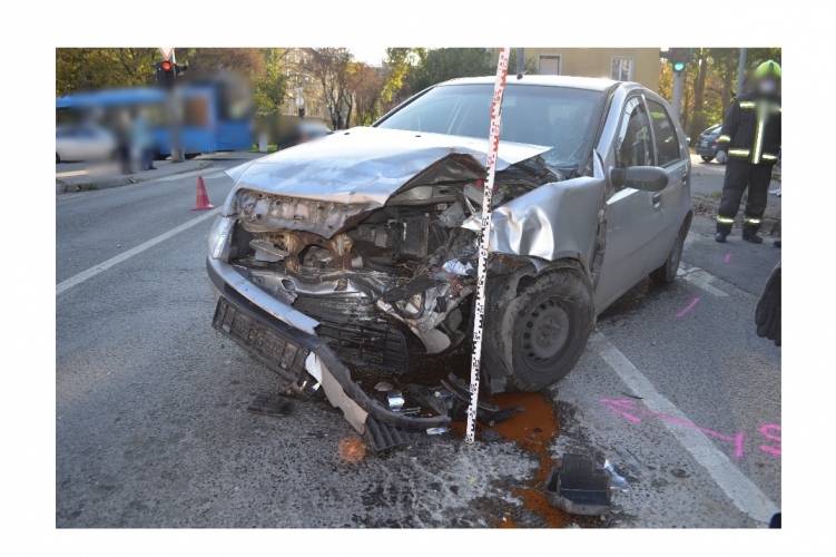 A fenti képen az egyik balesetben összetört gépkocsi látható. Két autó ütközött össze 2020. november 17-én 12 óra 30 perc körül Budapest III. kerületében, a Bogdáni út és a Huszti út kereszteződésében. A balesetben két ember könnyebben megsérült.