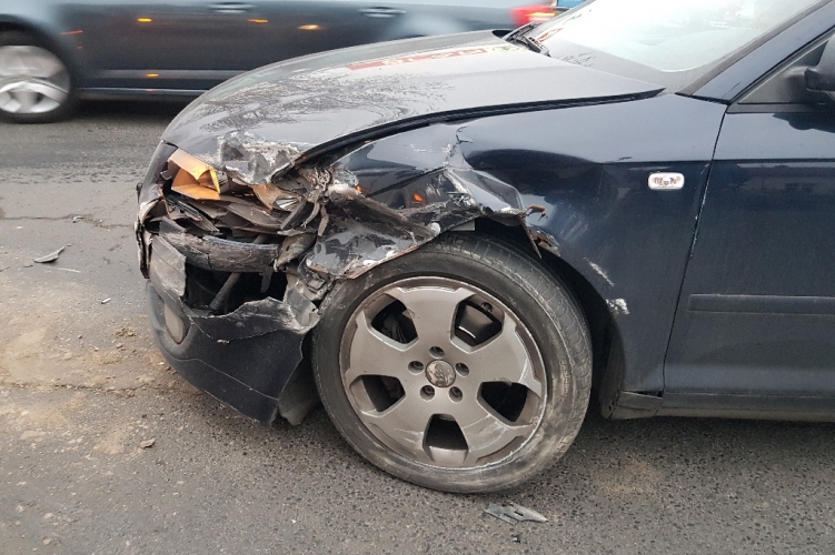 A fenti képen az egyik balesetben összetört autó látható. Egy teherautó és egy személygépkocsi ütközött össze 2020. november 26-án 7 óra körül Budapest X. kerületében, a Keresztúri úton. Ebben a balesetben nem sérült meg senki.