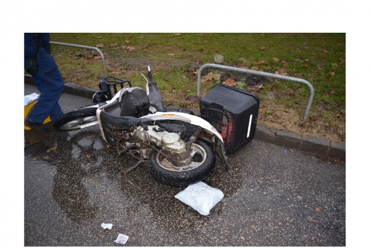 A fenti képen az egyik balesetben összetört motor látható. Eddig tisztázatlan körülmények között egy autó és egy motor ütközött össze 2020. december 7-én 13 óra 40 perc körül Budapest X. kerületében, a Gitár utcában. A balesetben egy ember súlyosan megsérült.