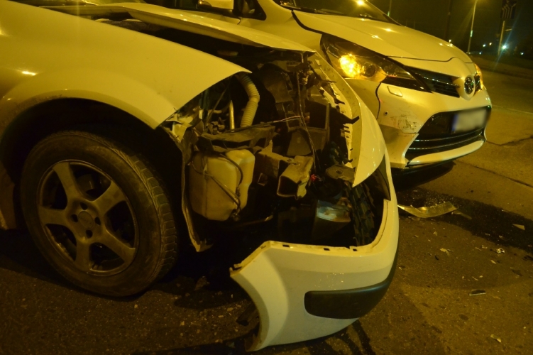 A fenti képen az egyik balesetben összetört két autó látható. Két személygépkocsi ütközött össze 2020. december 20-án 17 óra körül Budapest VIII. kerületében, a Dózsa György út és az Ifjúság útja kereszteződésében. Ebben a balesetben nem sérült meg senki.