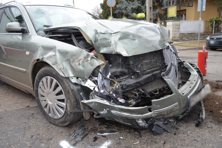 A fenti képen az egyik balesetben összetört egyik autó látható. Két autó ütközött össze 2020. december 21-én 9 óra 45 perc körüli időben Budapest XVI. kerületében, a Kossuth Lajos utca és a Rákosi út kereszteződésénél. Ebben a balesetben ketten súlyosan, ketten könnyebben sérült meg.