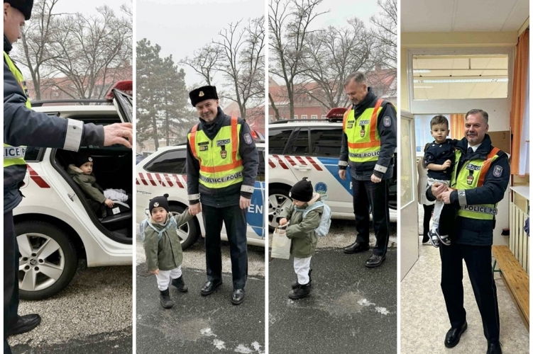 Január 15-én hatalmas élménynek volt részese Ádin, amikor reggel egy rendőrautó gurult a soproni házuk elé. Kovács József r. alezredes a Soproni Rendőrkapitányság Közlekedésrendészeti Osztályvezető-helyettese szülinapi meglepetéssel várta a kisfiút, majd autóba ültek és kedves kis csevegések közepette értek az óvodába. A bátor kisgyermek egy cseppet sem volt megszeppenve, boldogan sorolta a szabályokat kollégánknak: „Tudom, hogy a piros az tilos, a zöld az szabad…”. Az ovinál a Maci csoportos társai izgatottan várták az ünnepeltet és nem kisebb örömmel fogadták az egyenruhás rendőr bácsit és a rendőrautót.