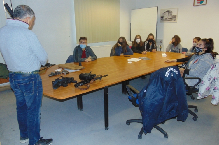 A helyi középiskola oktatójának vezetésével a 10. évfolyamos tanulók betekinthettek a Várpalotai Rendőrkapitányság egyes területein folyó munkába. A legérdekesebbnek az előállító helyiséget találták a diákok, továbbá megnézhették a rendőrségen rendszeresített fegyvereket, a csapatszolgálati tevékenység során használt felszereléseket, valamint a szolgálati járműveket.