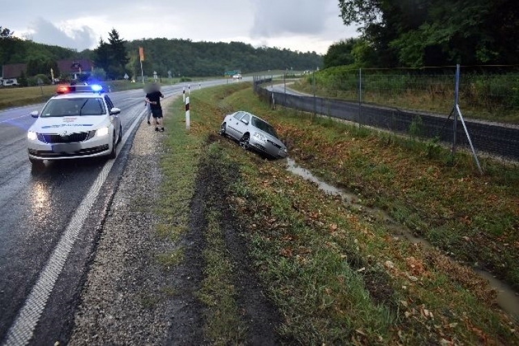 A 76-os számú főúton közlekedett személyautóval egy 22 éves kondorfai férfi Zalaegerszeg irányából Nagykapornak felé 2021. augusztus 1-én 17 óra 20 perckor. A 48-as kilométerszelvényben lévő erősen jobbra ívelő útkanyarulatban az esőtől nedves úttesten megcsúszott, majd elvesztette uralmát a gépkocsija felett és a vízelvezető árokba csapódott, személyi sérülés nem történt.