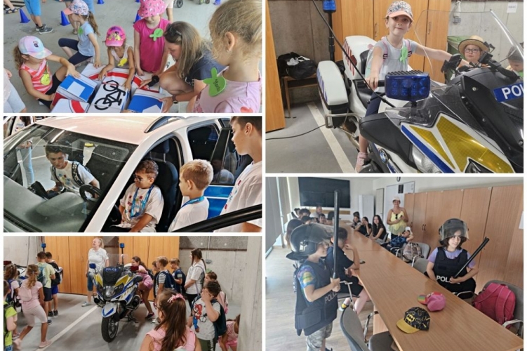 A rendőrkapitányság bűn- és baleset-megelőzési szakemberei idén nyáron több mint 600 fiatalnak mutatták be a rendőrség különböző szakterületeit, az itt végzett rendőri munkát. A kis vendégek megismerkedhettek a rendőri járműparkkal, az egyenruhások felszerelésévél, amelyet a bátrabbak fel is próbálhattak.