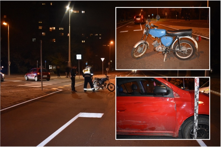 A megyeszékhelyen, a Nyíri út és a Március 15. utca kereszteződésében összeütközött egy személyautó és egy segédmotoros kerékpárt vezető férfi 18 órakor. A helyszíni szemle megállapításai szerint az autós a Nyíri úton haladva balra akart kanyarodni, ám a manőver során nem biztosított elsőbbséget a védett úton haladó motorosnak, aki az elsődleges adatok alapján súlyosan megsérült.