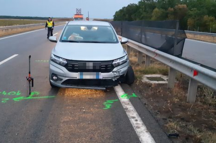 Egy békéscsabai lakos közlekedett személygépkocsival Kunszentmárton külterületén Kecskemét irányába 2022. augusztus 8-án 19 óra körül. A sofőr haladása során – egy zivatart követően csúszós útszakaszon – elveszítette uralmát járműve irányítása felett és a szalagkorlátnak csapódott. A baleset következtében a gépkocsivezető és három kiskorú utasa – az elsődleges orvosi vélemény szerint – könnyű sérülést szenvedett.