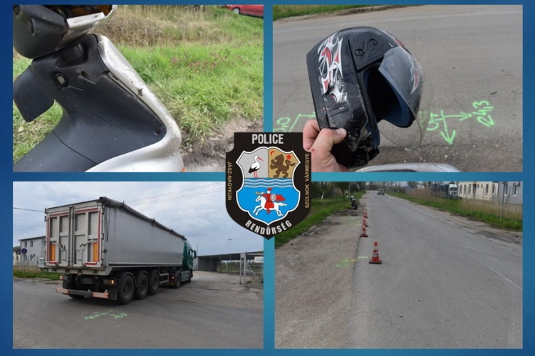 Egy helyi lakos az által vezetett járműszerelvénnyel kívánt hátramenetben beállni Karcag Gyarmati úton egy kapubejáróból az út túloldalán lévő telephelyre 2023. április 19-én délután. A manőver során nem biztosított elsőbbséget a neki jobbról közlekedő segédmotoros kerékpárosnak. A motoros, hogy az ütközést elkerülje balra kormányzott, majd elborult a járművel és a bal oldali útpadkára sodródott. A baleset következtében a motoros – az elsődleges orvosi vélemény szerint – könnyű sérülést szenvedett.